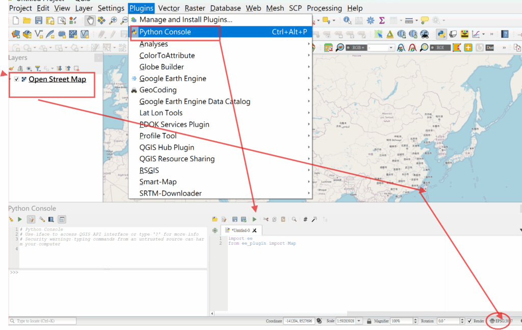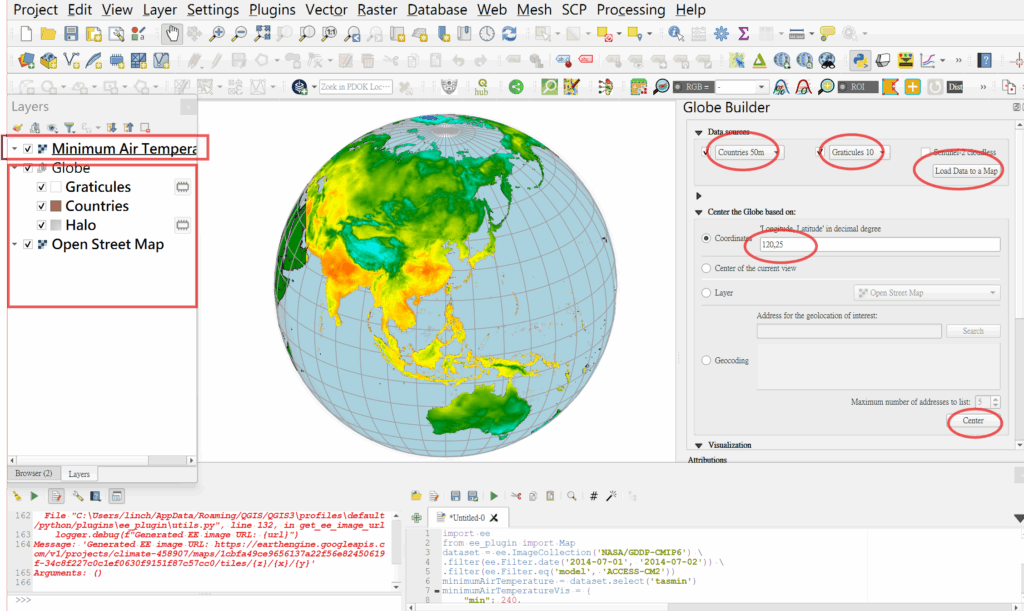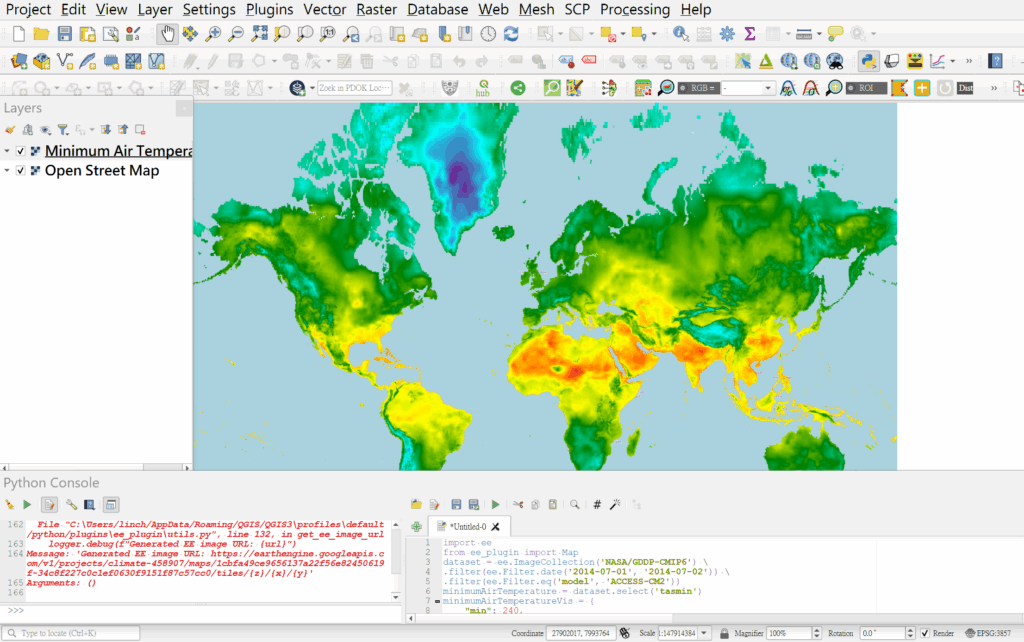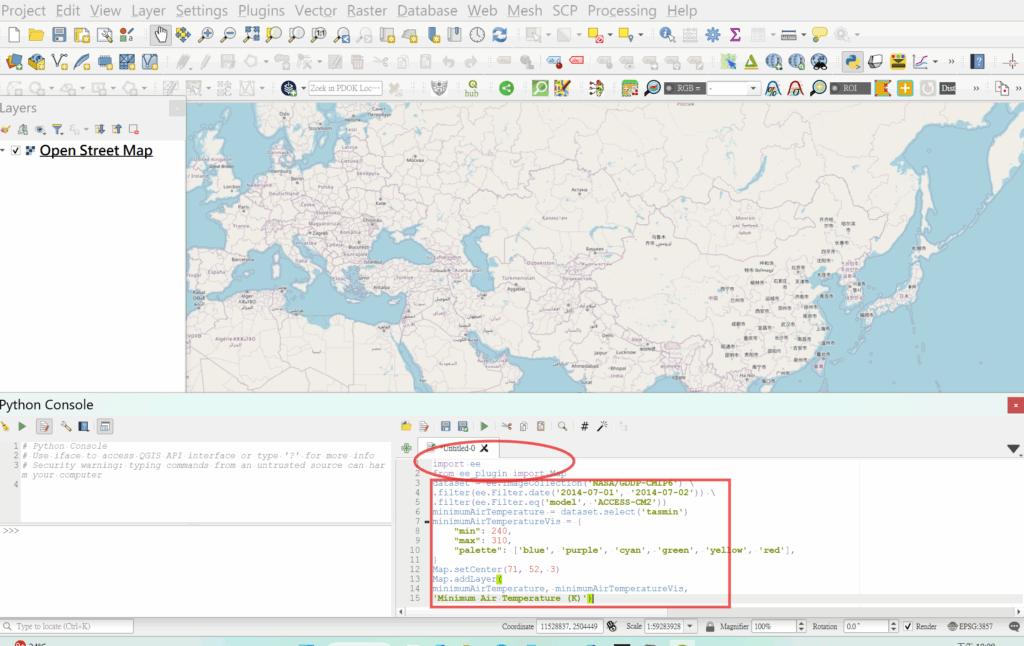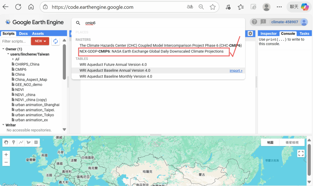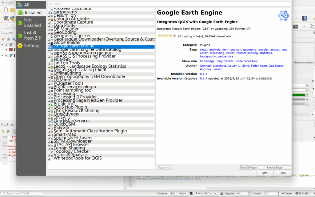 Qgis中plugins中開啟Google Earth Engine建立python的CMIP6